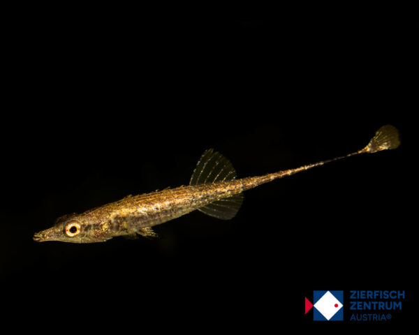 Gewöhnlich 2,5–3,5 cm. Sehr schlank und starr wirkend; schuppen-/plattenartige Panzerung (Indostomidae), kleine endständige Schnauze. Färbung bräunlich bis oliv mit feinen, dunklen Zeichnungselementen; ♀ meist fülliger, ♂ zeigen in Stimmung kontrastreicher gefasste Flossen und besetzen Kleinstreviere.