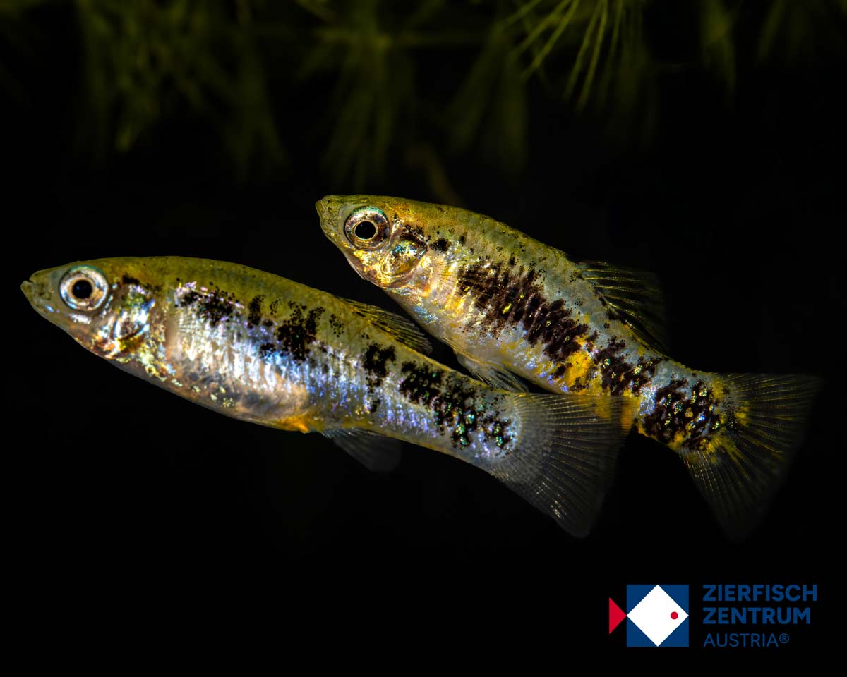 Lebendgebärend (Poeciliidae): ♂ befruchtet mit Gonopodium. Tragzeit ca. 4–6 Wochen; Würfe meist 15–40 relativ großer Jungfische, die sofort feines Frost-/Lebendfutter und Staubfutter annehmen. Dichte Bepflanzung erhöht die Jungfischrate.