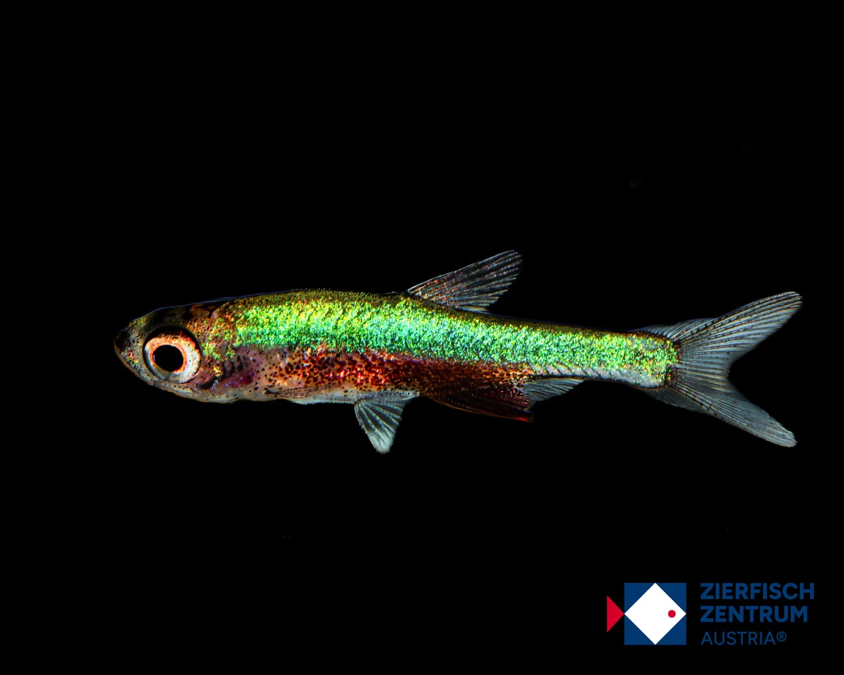 Winzige, intensiv schimmernde Form aus Südostasien, in der Aquaristik als „blue“-Variante geführt. Belebt schwarzwassergeprägte Torfsumpf- und Waldbäche mit braun gefärbtem, sehr weichem, saurem Wasser; äußerst feinfriedlicher Schwarmfisch.